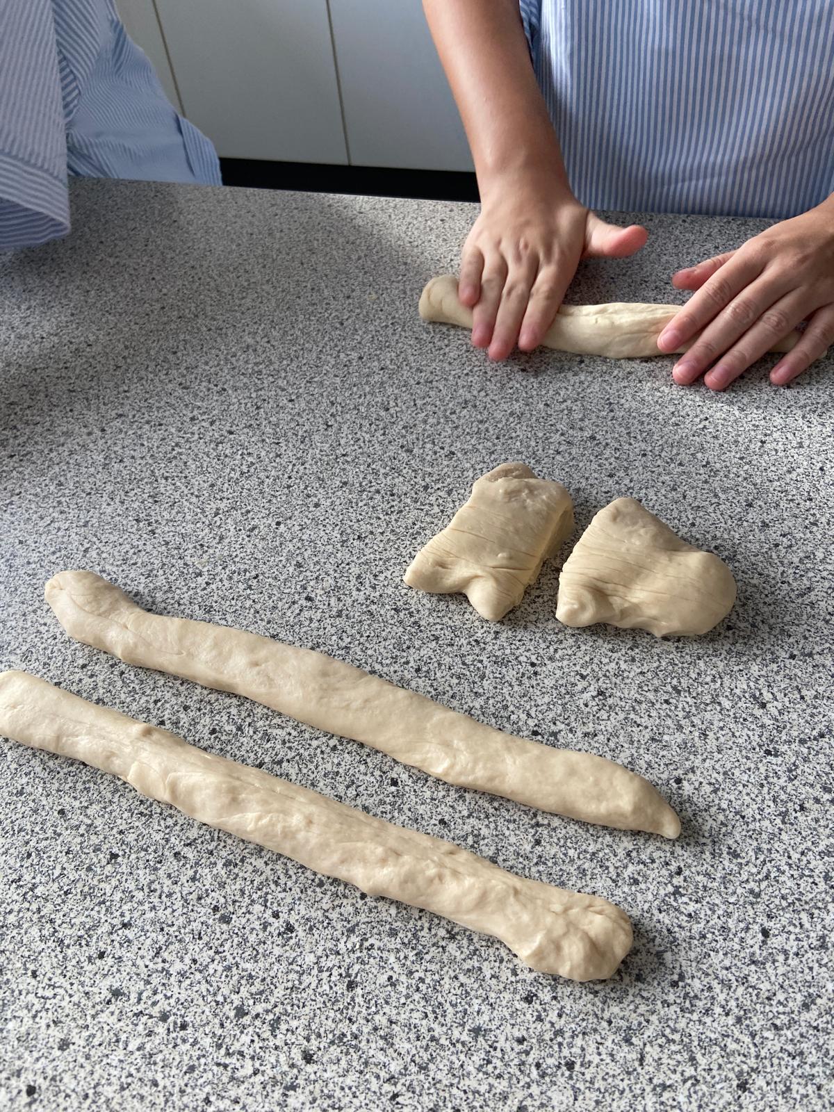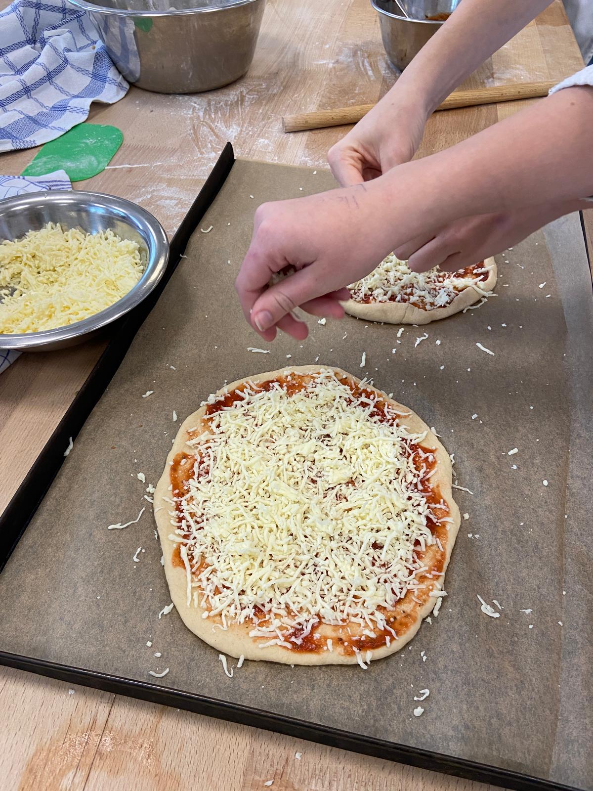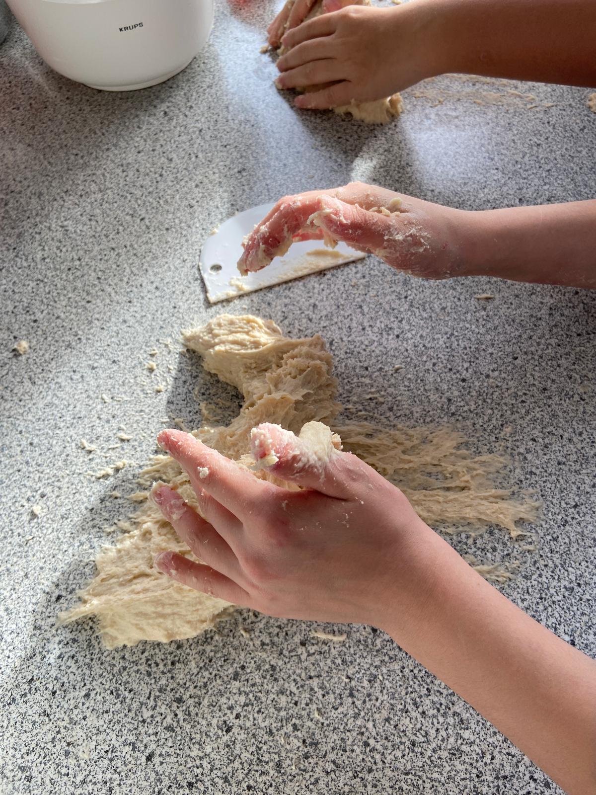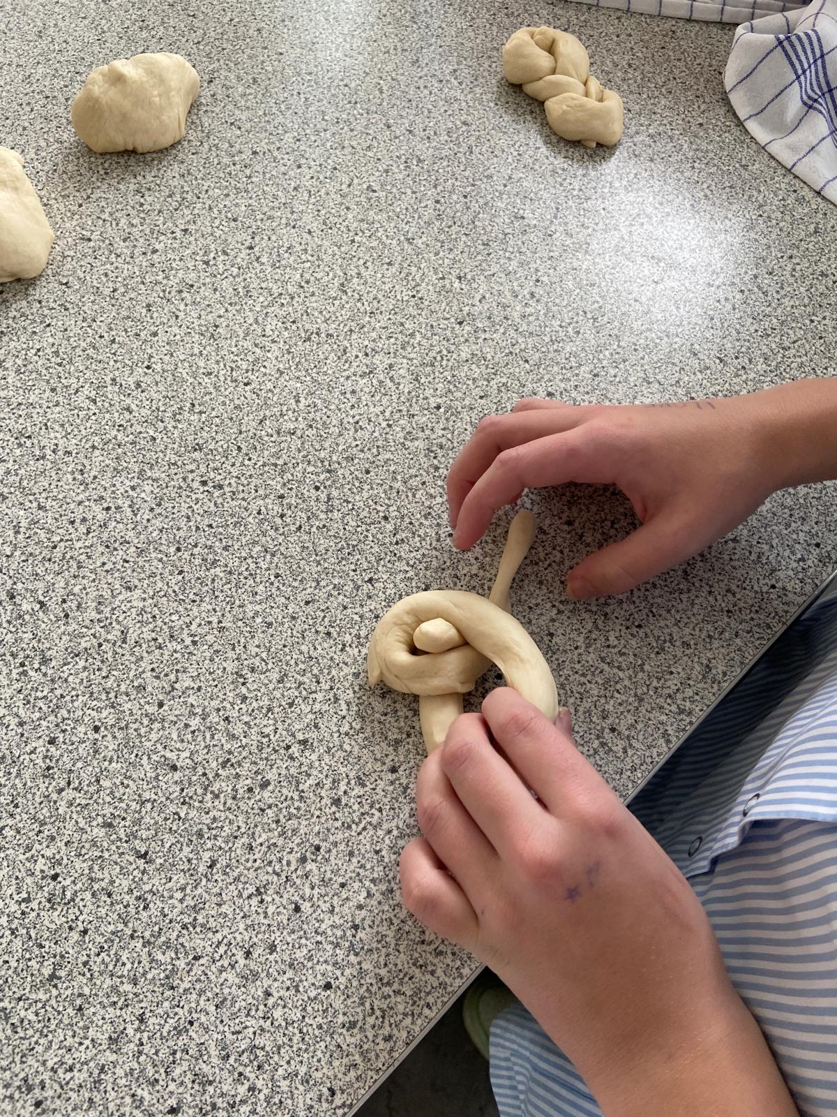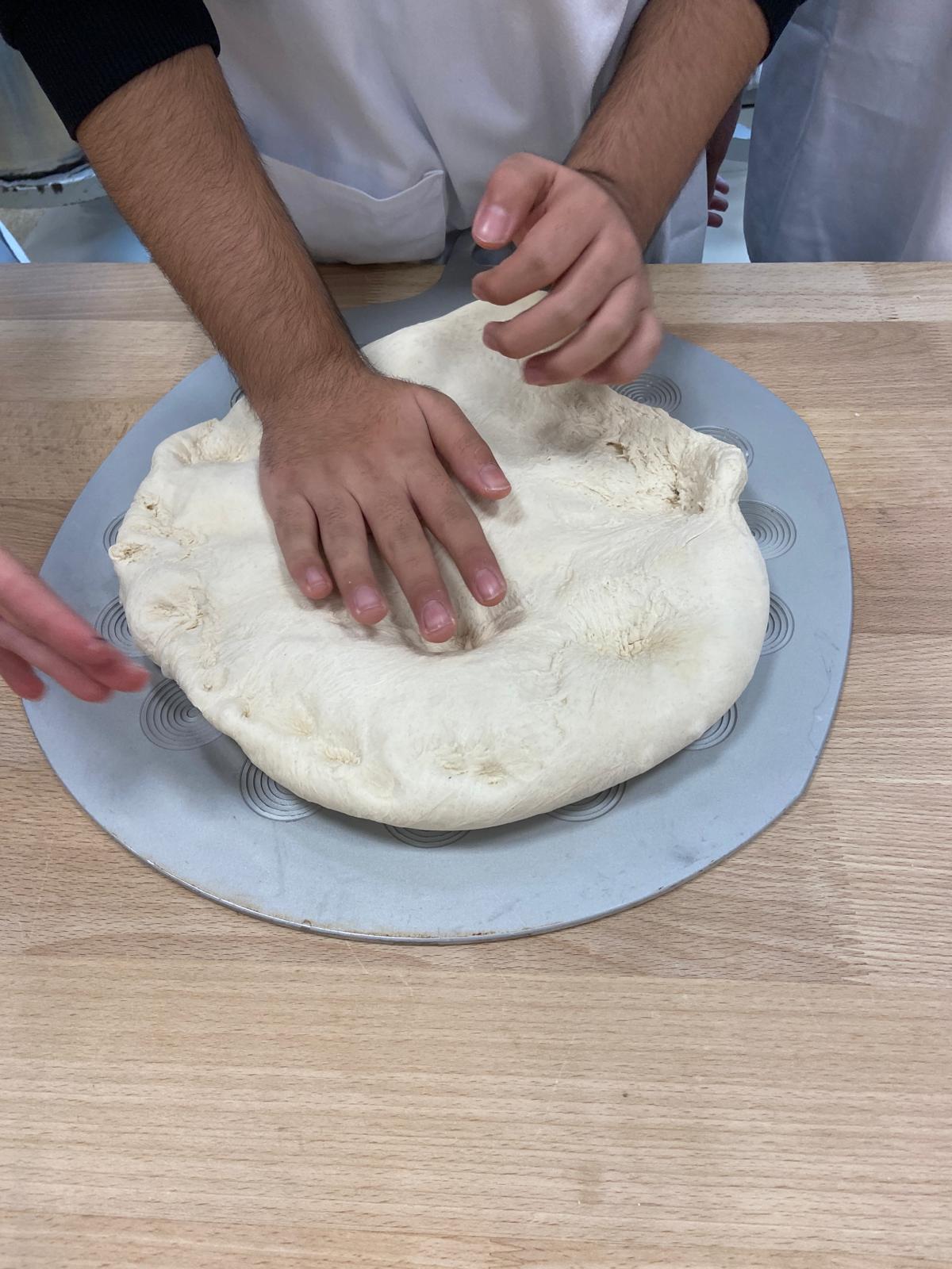 An allen Tagen arbeiteten wir intensiv praktisch. Wir stellten verschiedene Teigarten her und lernten unterschiedliche Backtechniken kennen. Zu den Backwaren, die wir herstellten, gehörten unter anderem Hefezöpfe, Weizenbrötchen, Amerikaner und Mandelhörnchen. Außerdem bereiteten wir für jeden eine Pizza aus Hefeteig zu, was uns besonders viel Spaß machte.