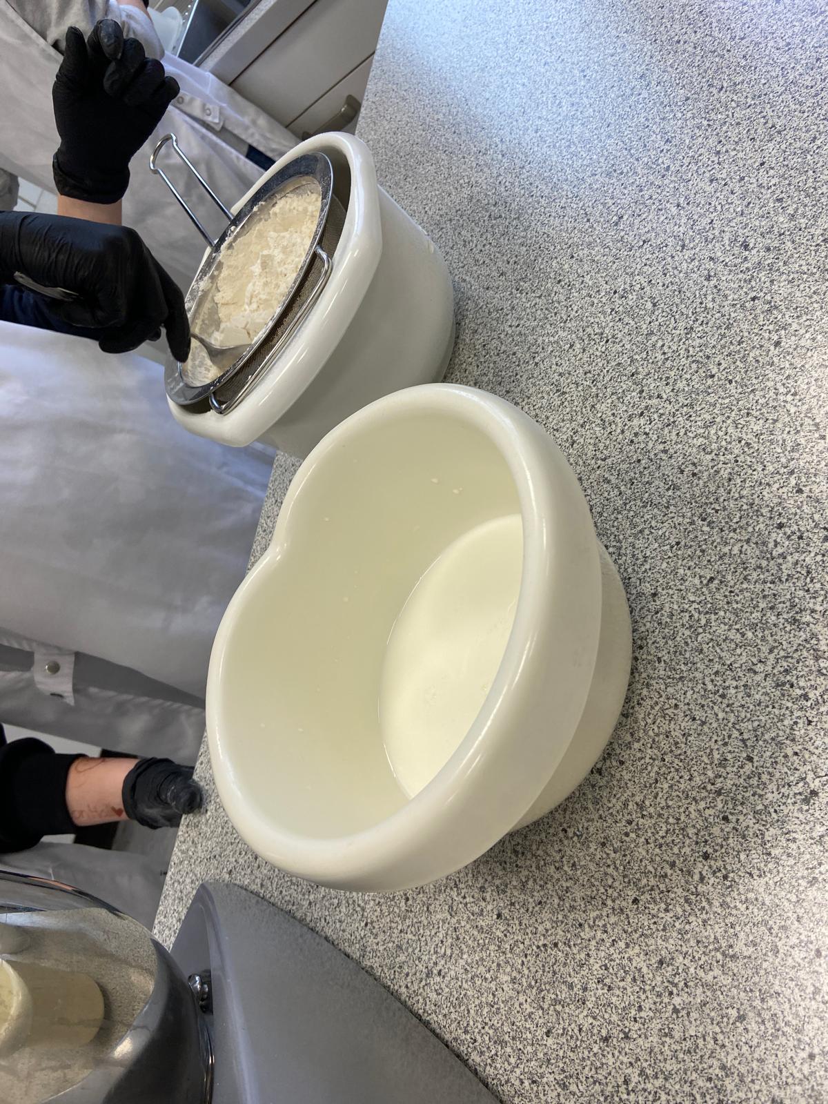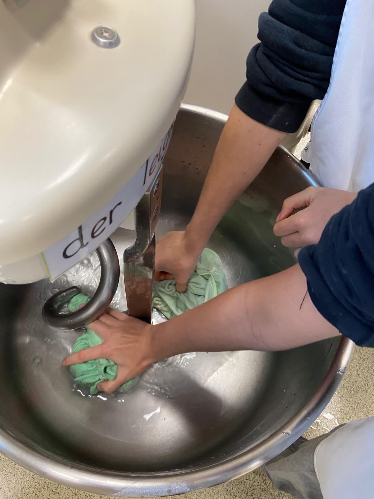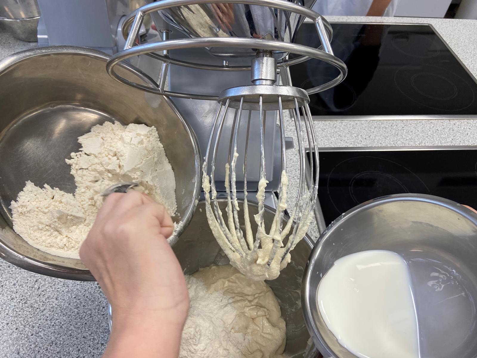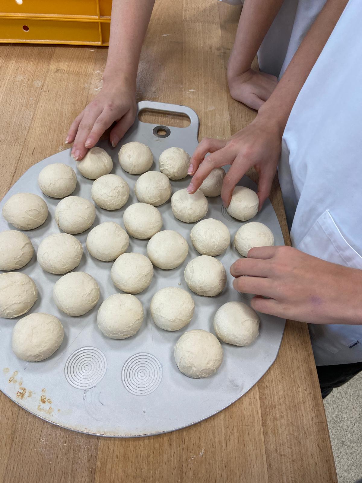 Zuerst lernten wir die Backstube kennen. Wir machten uns mit den Arbeitsplätzen, Geräten sowie den Sicherheits- und Hygieneregeln vertraut. Dabei wurde uns schnell klar, wie wichtig Ordnung, Sauberkeit und Teamarbeit in einer professionellen Backumgebung sind.