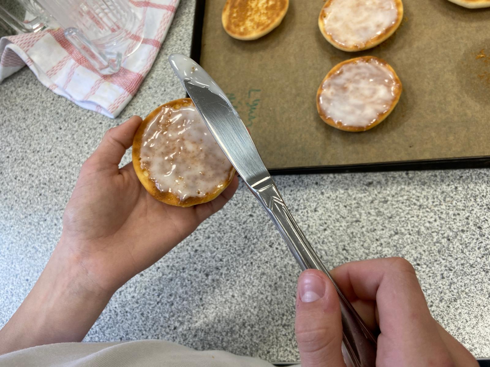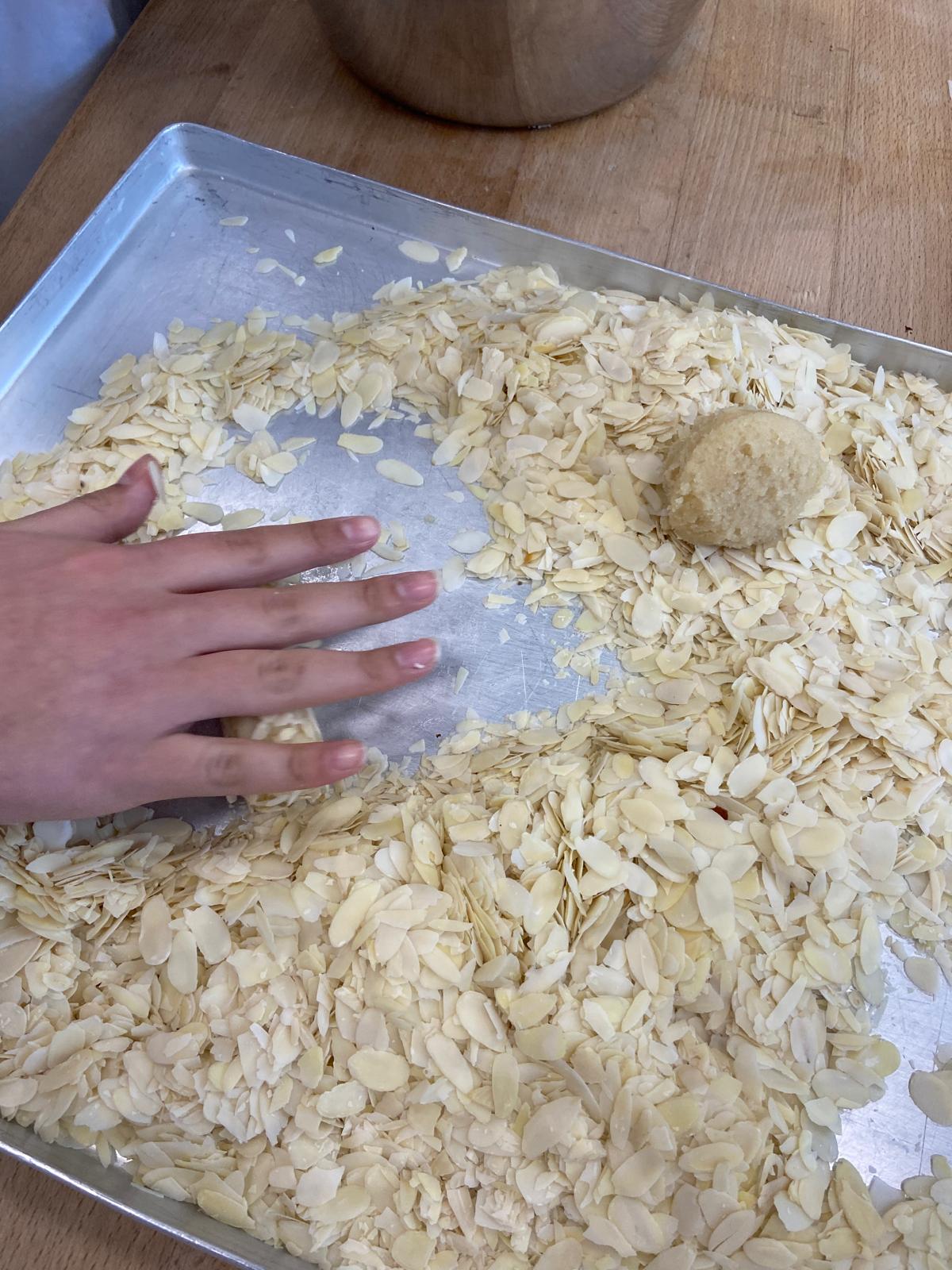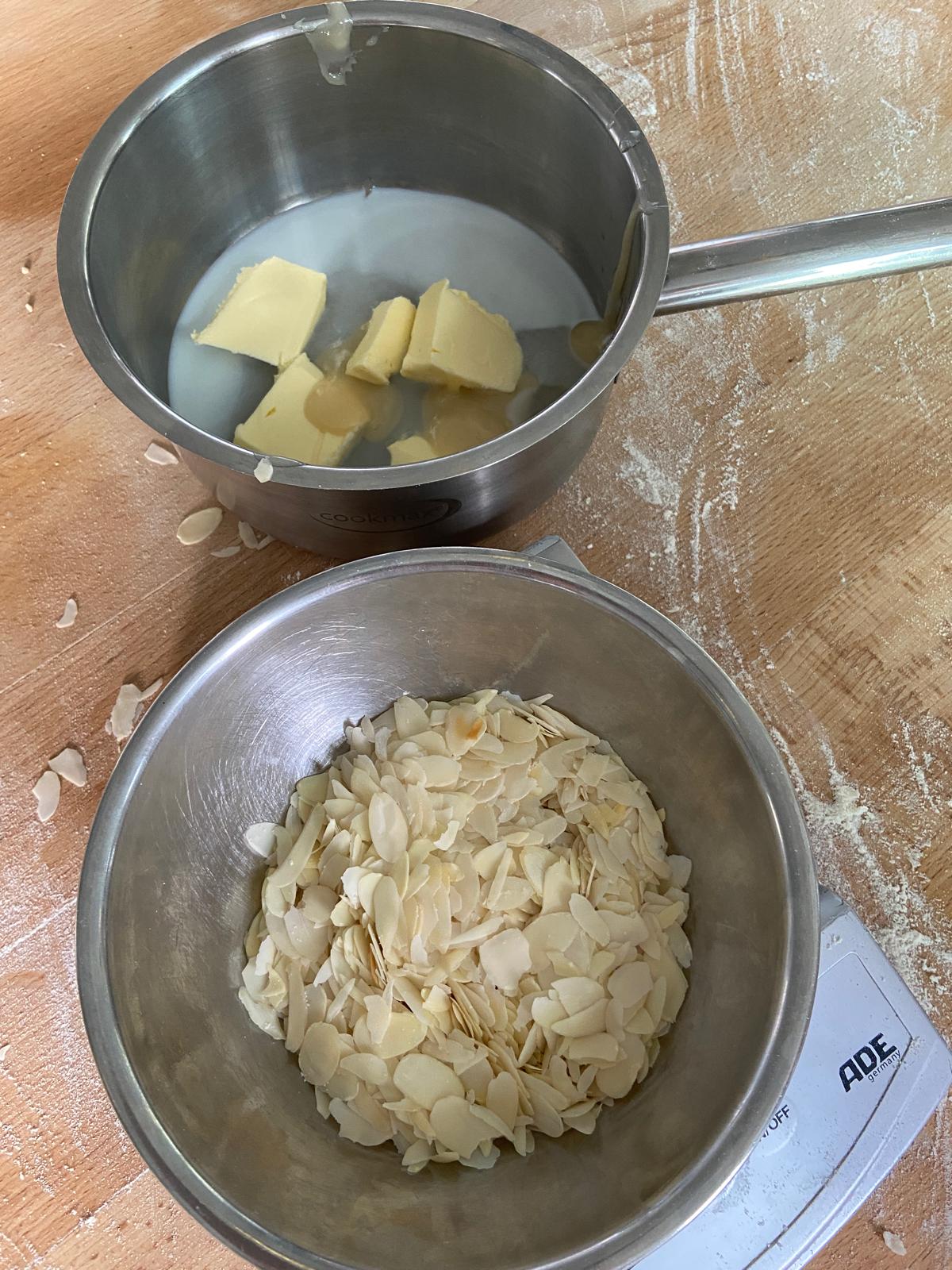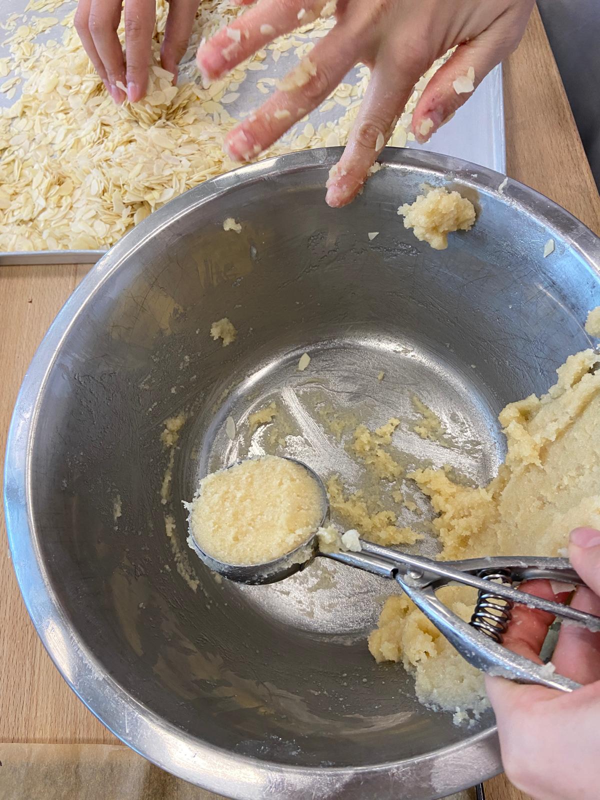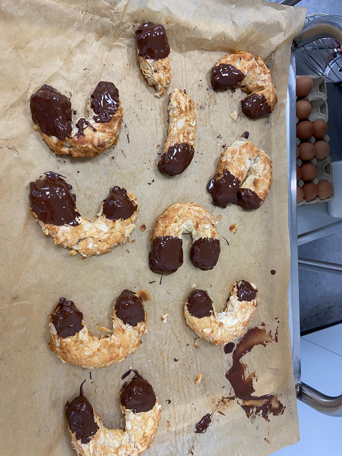 Ein weiteres Highlight war das Backen eines Bienenstichs mit Puddingfüllung. Dabei kombinierten wir mehrere Arbeitsschritte, wie das Herstellen des Hefeteigs, der Puddingcreme und des Mandelbelags. So konnten wir unser bereits erlerntes Wissen gut anwenden und vertiefen.