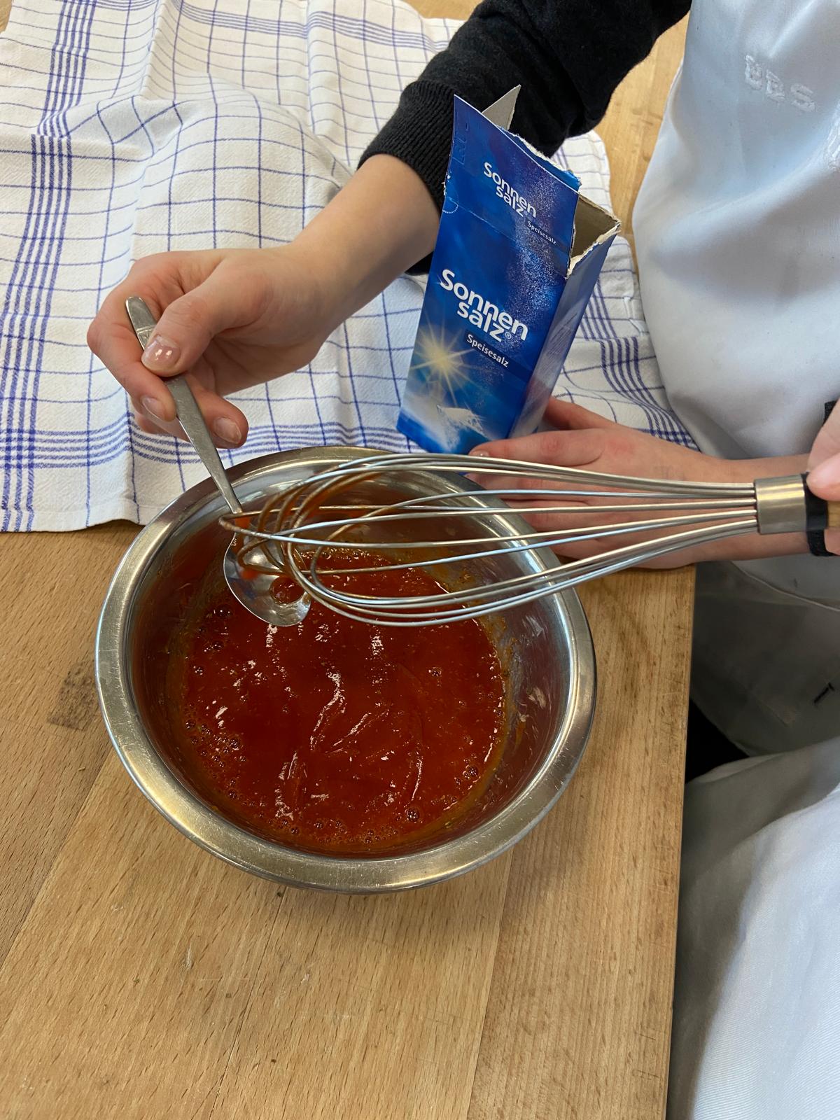 Ein besonderer Schwerpunkt lag auf dem selbstständigen Arbeiten. Wir lernten, Rezepte richtig zu lesen, Arbeitsabläufe zu planen und Aufgaben im Team sinnvoll zu verteilen. Herr Schumann unterstützte uns dabei mit hilfreichen Tipps und praktischen Hinweisen.