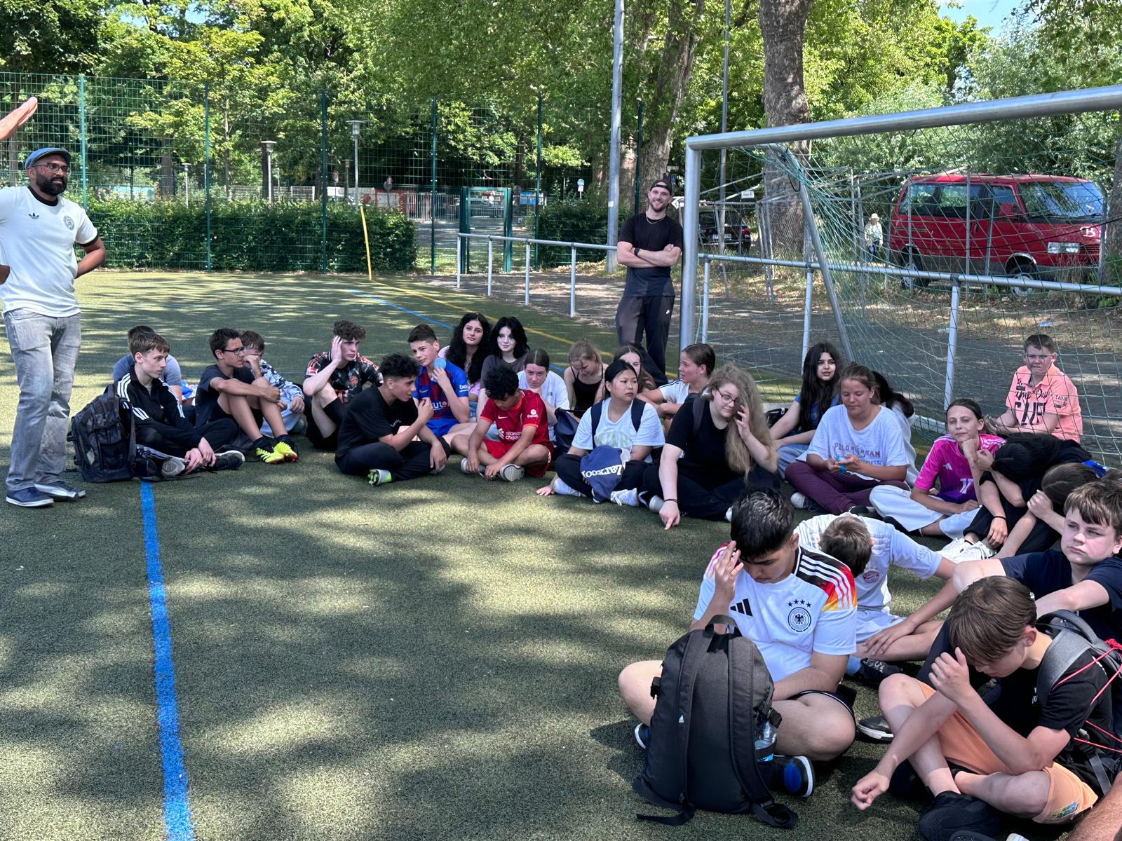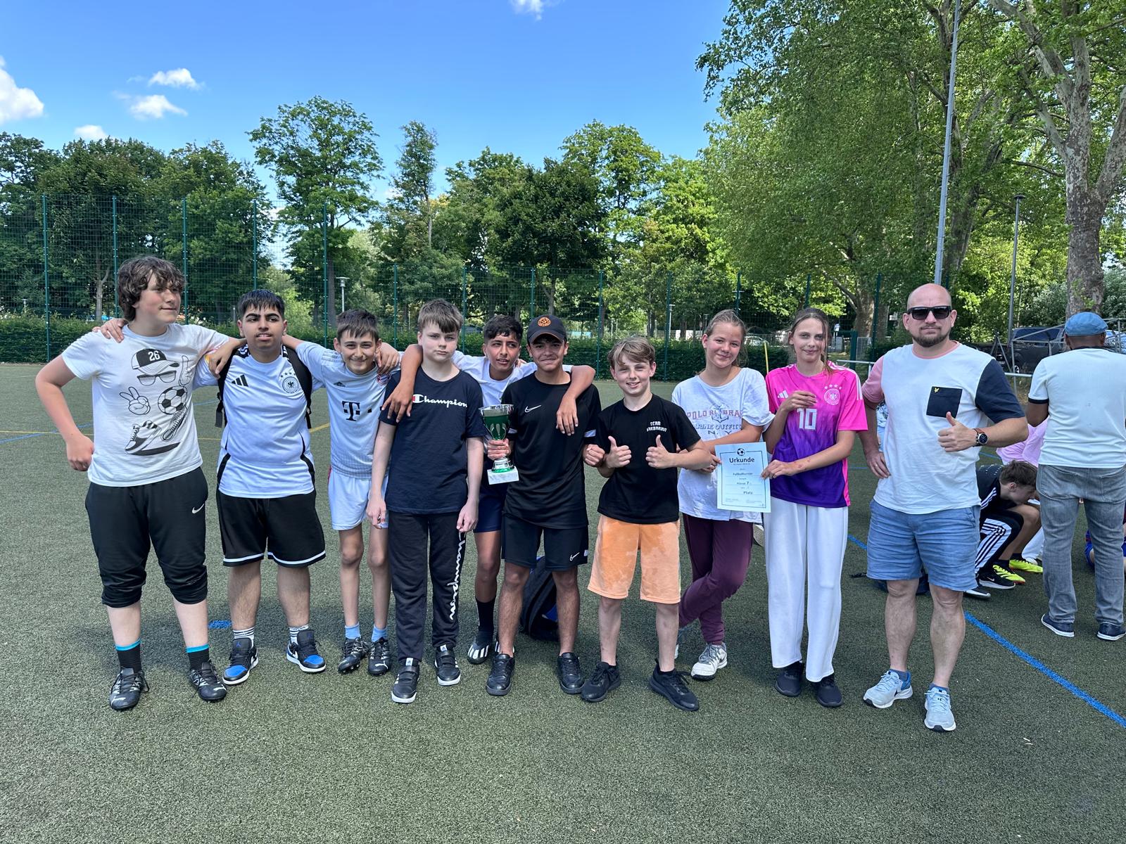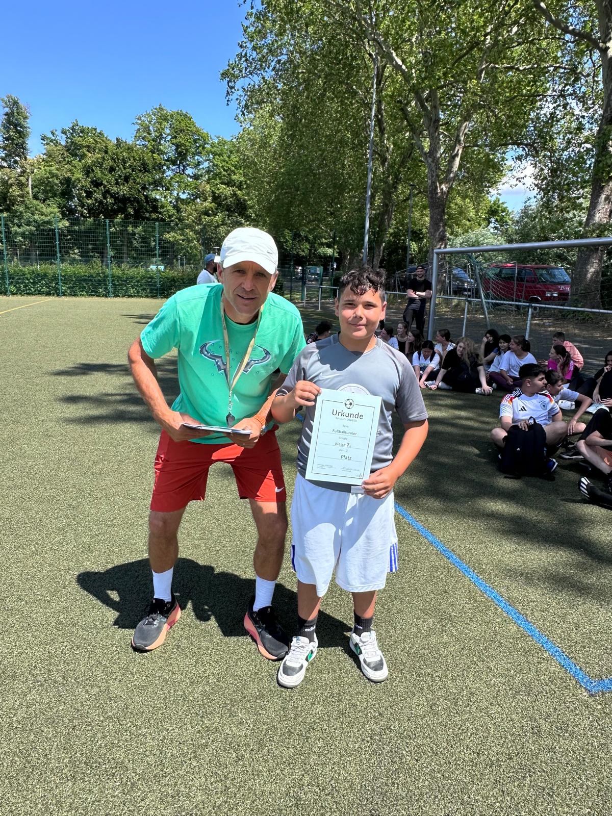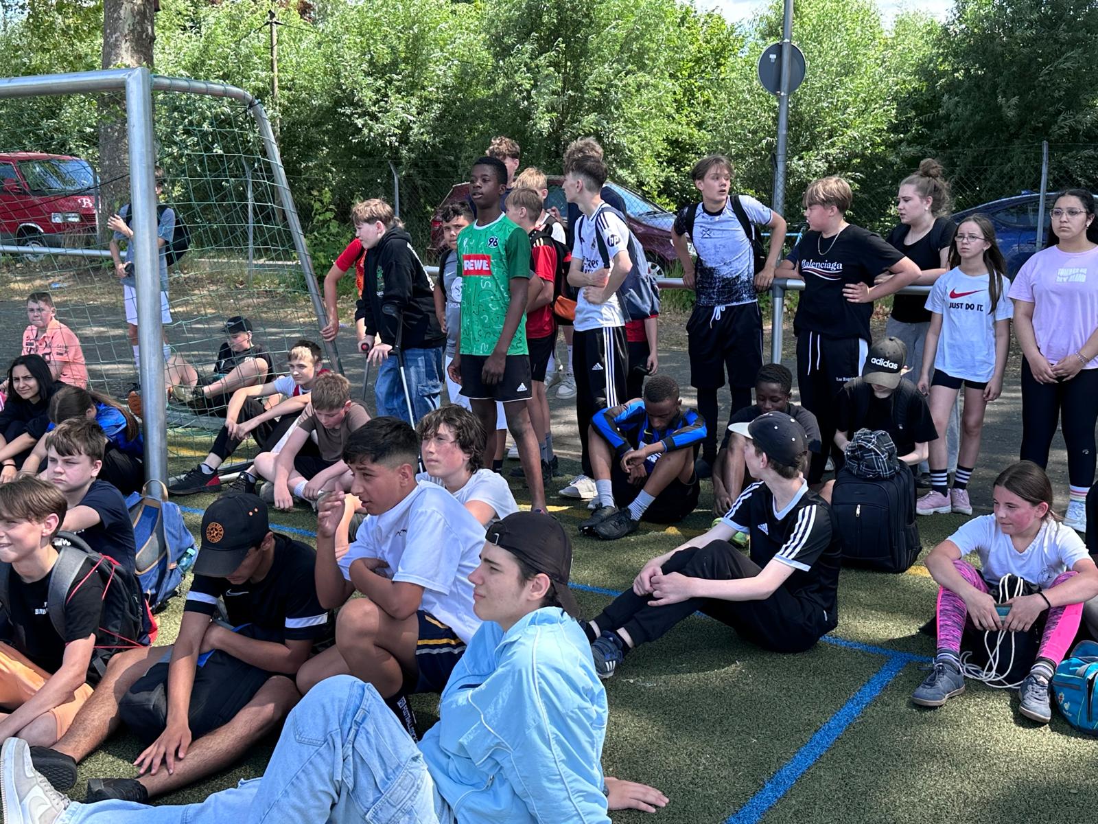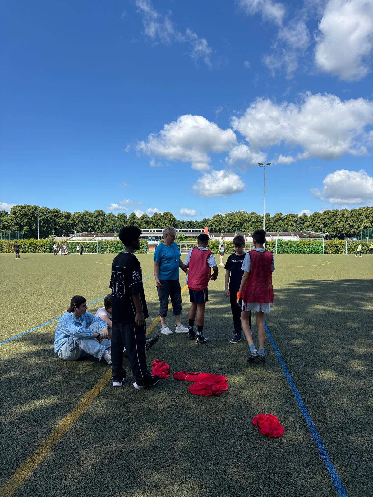 Bei stündlich wärmer werdendenTemperaturen zogen die 7. Klassen mit den Sportlehrern Herrn Ungureanu, Herrn Albrecht, Herrn Hömmen und den Klassenleitungen Frau Dombrowski, Herrn Große, Herrn Manjali und Frau Remstedt am 25.052025 ihr Fußballturnier im Jahnstadion mit Spaß an der Sache durch. Mädchen- und Jungenmannschaften kämpften um den gemeinsamen Klassensieg und feuerten sich gegenseitig an. Am Ende konnte die Klasse 7b den Klassensieg feiern: