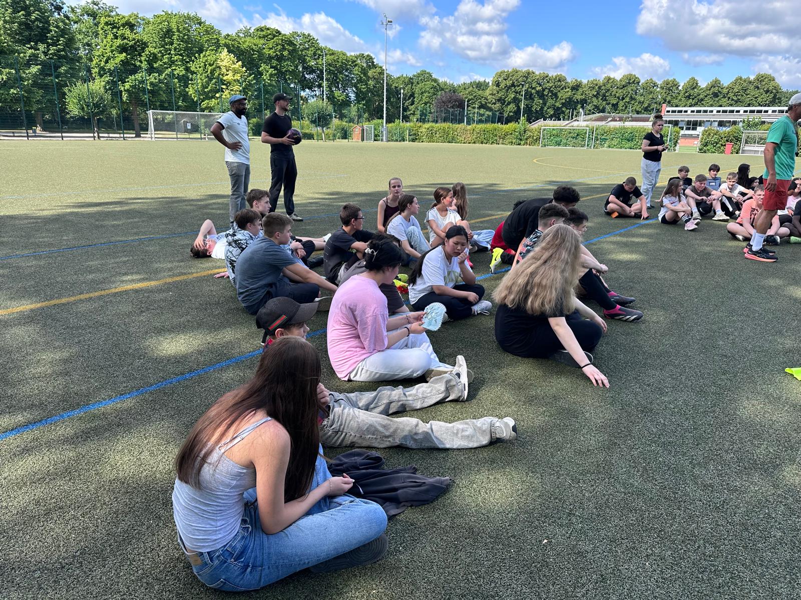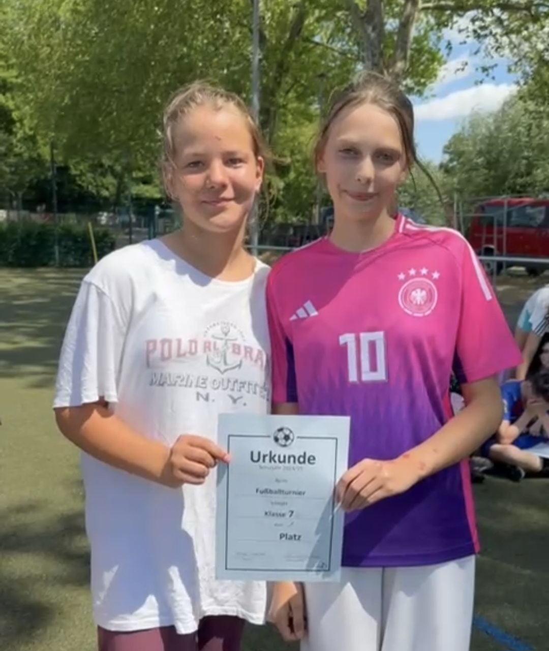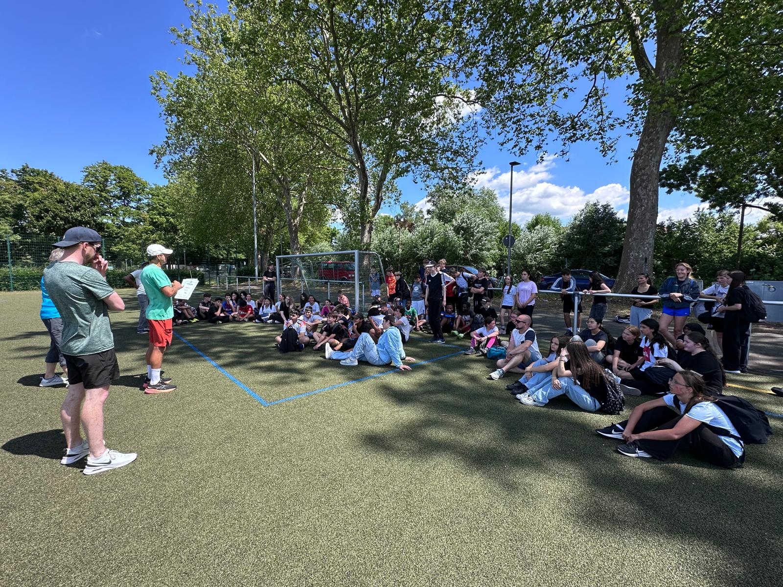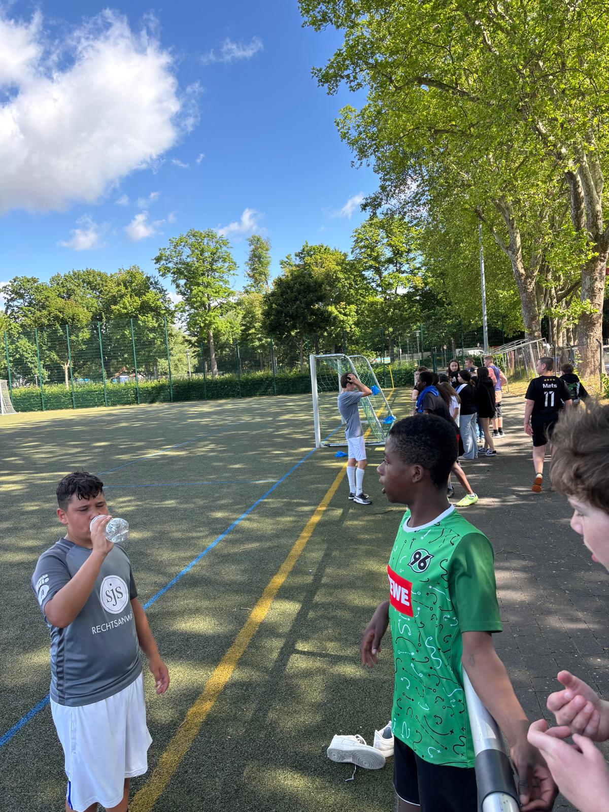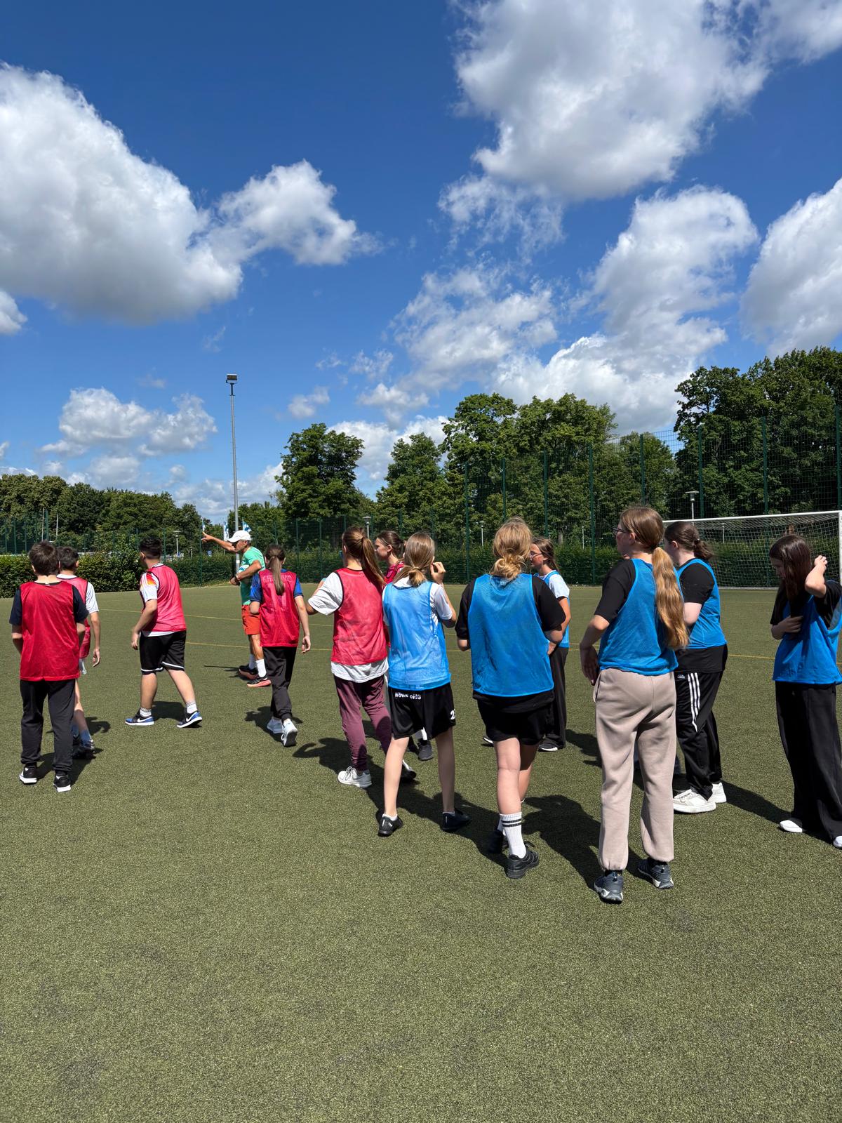 Bei stündlich wärmer werdendenTemperaturen zogen die 7. Klassen mit den Sportlehrern Herrn Ungureanu, Herrn Albrecht, Herrn Hömmen und den Klassenleitungen Frau Dombrowski, Herrn Große, Herrn Manjali und Frau Remstedt am 25.052025 ihr Fußballturnier im Jahnstadion mit Spaß an der Sache durch. Mädchen- und Jungenmannschaften kämpften um den gemeinsamen Klassensieg und feuerten sich gegenseitig an. Am Ende konnte die Klasse 7b den Klassensieg feiern: