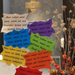 Um dieses „Alltagsbunt“ geht es in den Fürbitten, damit wir selbst und andere im Mit- und Füreinander Farben ins Leben bringen. Im abschließenden Segensgebet kommen nochmal alle Farben als Zeichen der Hoffnung vor und wir singen „Gott, dein guter Segen ist wie ein großes Zelt / ein helles Licht / des Freundes Hand. Bleibe bei uns alle Zeit. Segne uns, denn der Weg ist weit.“
