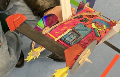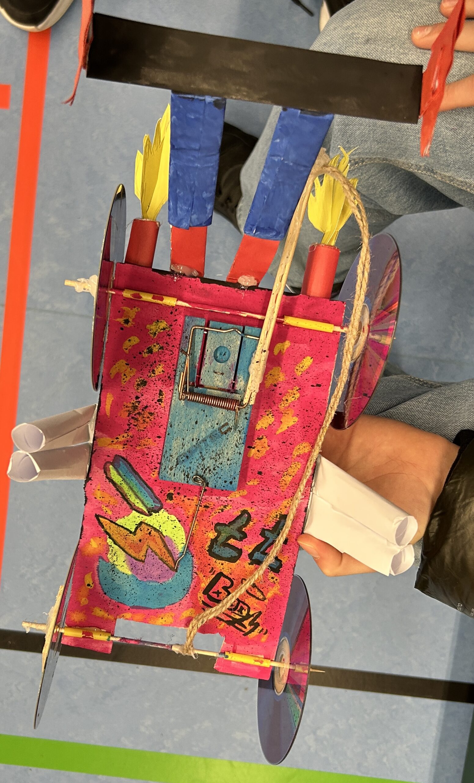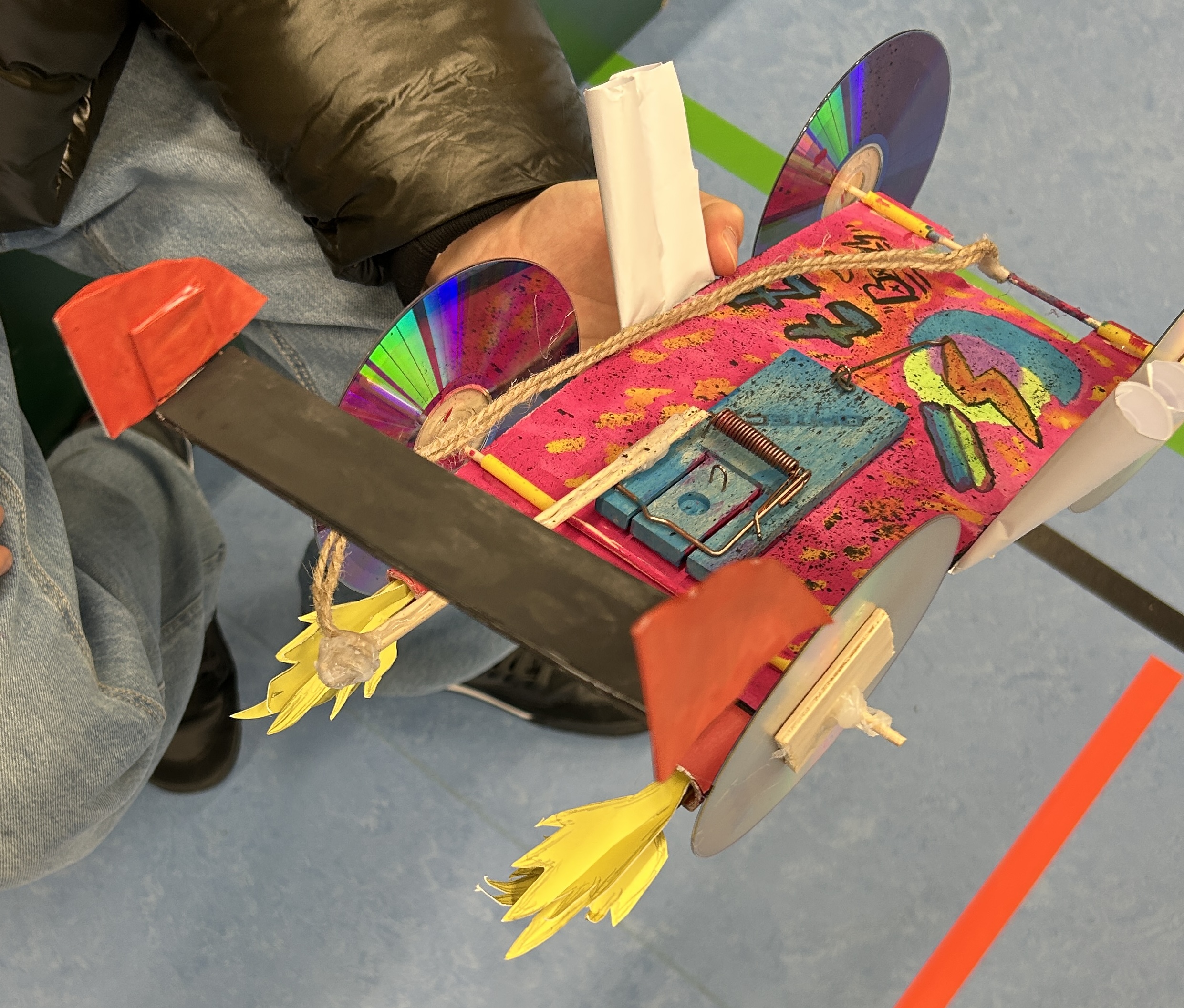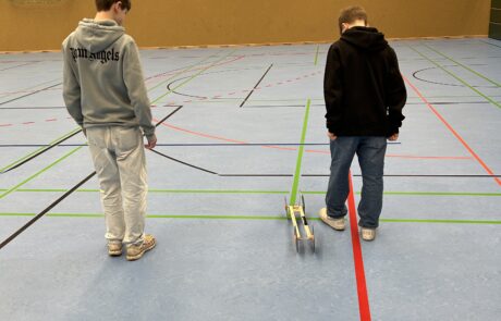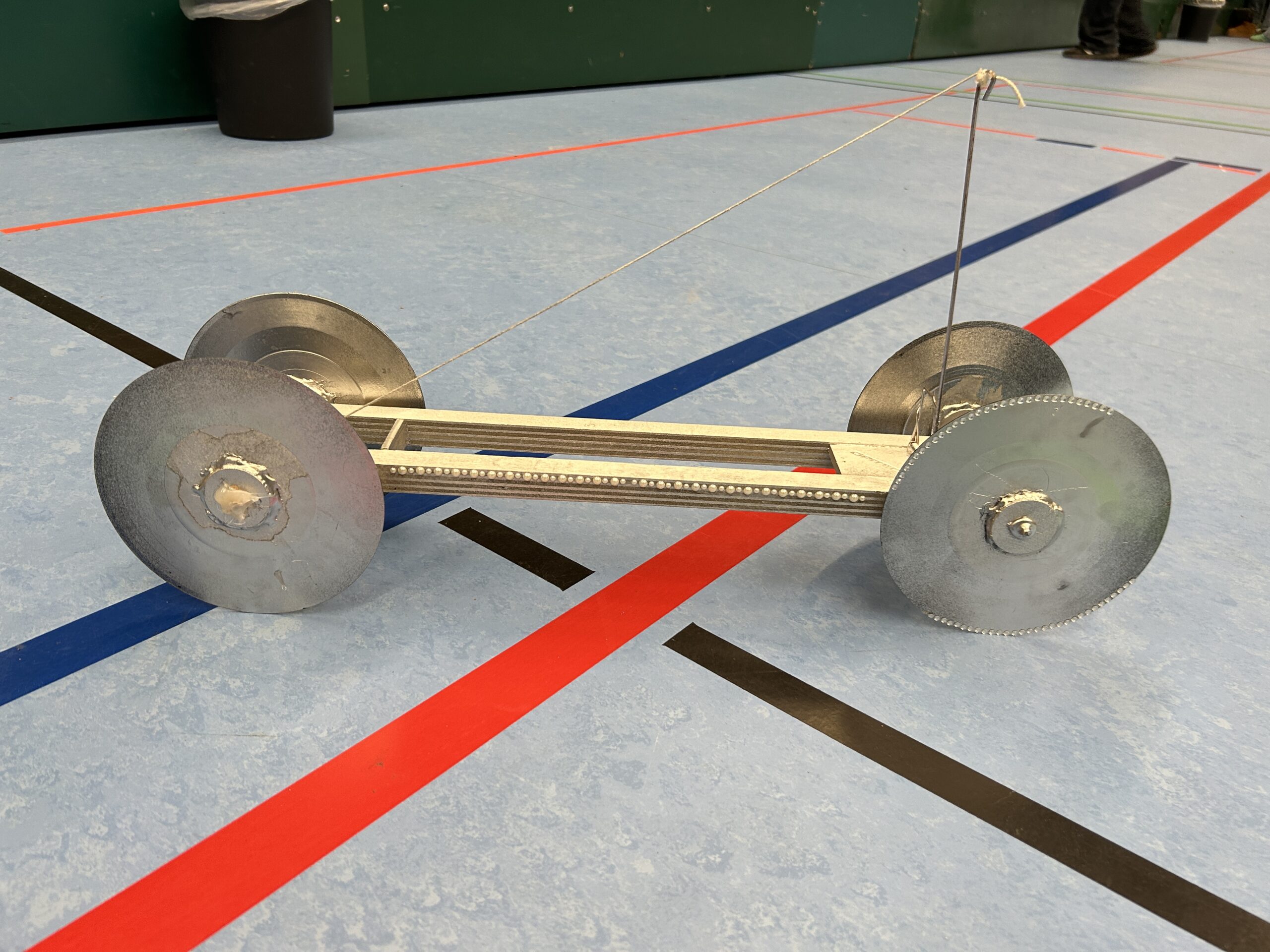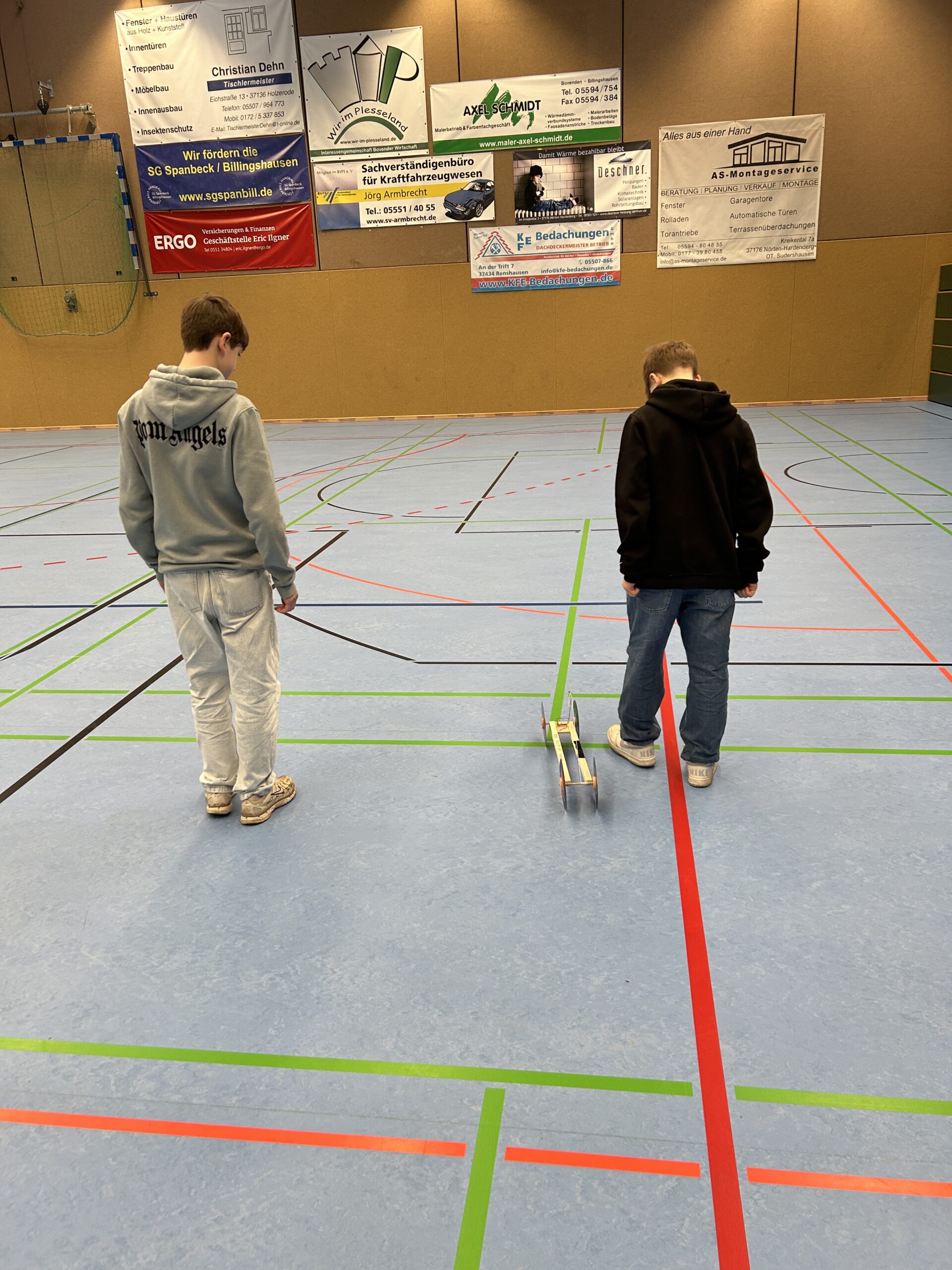 Mit viel Teamgeist und noch mehr Neugier machten wir uns in 2er-Teams an die Konstruktion. Die Materialauswahl blieb zwar eher klassisch, doch die Zielstrebigkeit beim Bauen nahm von Minute zu Minute zu. Im Werkraum legten die Fahrzeuge von allen Teams bei Testfahrten beeindruckende Strecken zurück – doch der Hallenboden beim Grand Prix in der Turnhalle der IGS Bovenden sollte eine ganz neue Herausforderung werden. Die Ergebnisse dort sorgten leider eher für verwunderte Gesichter und kurze Fahrstrecken.