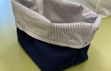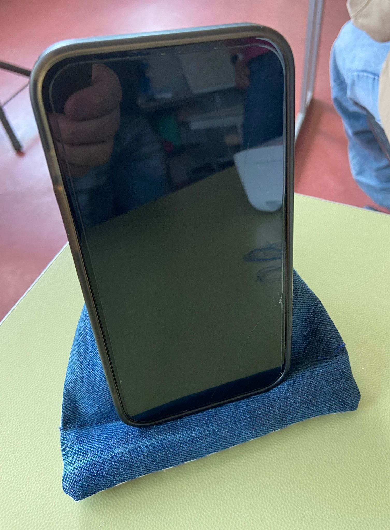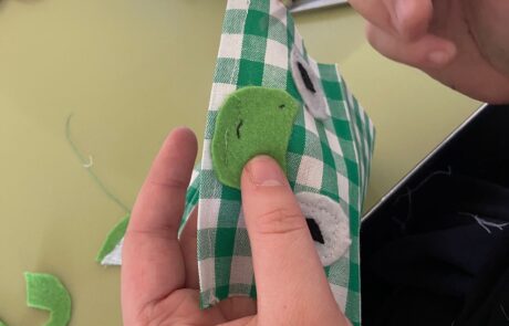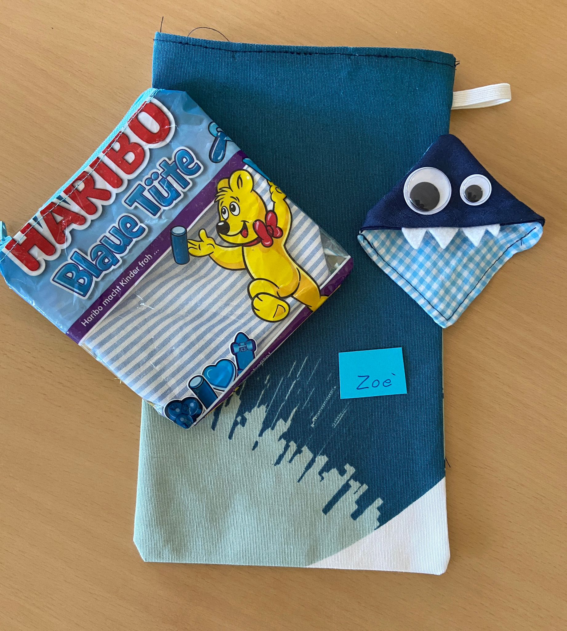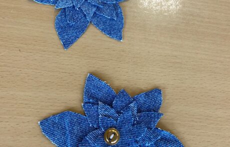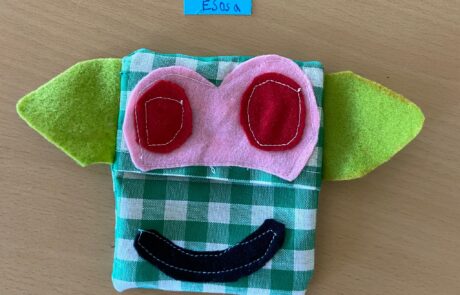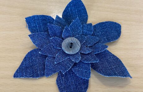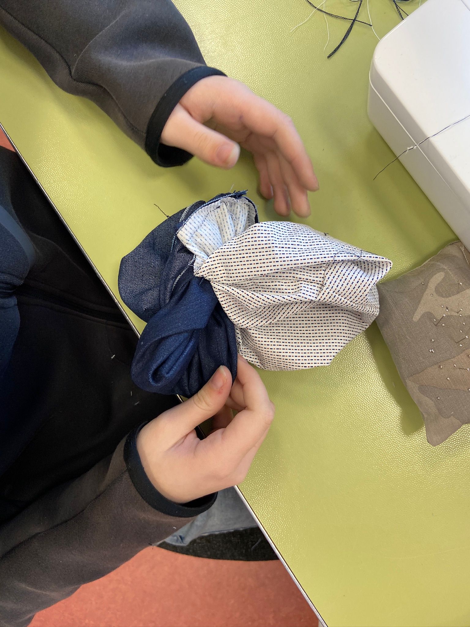 Zu Beginn stand reine Handarbeit auf dem Programm; die SuS gestalteten eine mehrlagige Stoffblume aus Jeansstoff und mussten dazu anzeichnen, ausschneiden und einen Knopf annähen. Anschließend begann die Arbeit an der Nähmaschine. Jetzt galt es erst einmal, ein- und umzufädeln, gerade und parallele Nähte zu üben und die Koordination zwischen Hand und Fuß zu verinnerlichen. Dann begannen die Schülerinnen und Schüler die Arbeit an verschiedenen Nähaufgaben – die Stoffe mussten nach den Nähanleitungen vorbereitet, angezeichnet, gesteckt und genäht werden. So entstanden aus alten Stoffen, Stoffresten und Chips-oder Süßigkeitentüten neue und nützliche Gegenstände, wie z.B. Abschminkpads, Utensilos, Handy-Sitzsäcke, Monsterlesezeichen und -kühlpacks, Aufbewahrungsbeutel, kleine Taschen und Schlüsselanhänger. Dabei konnten die SuS eigene Ideen und Wünsche umsetzen, ihrer Kreativität freien Lauf lassen und von Stunde zu Stunde sicherer im Umgang mit der Nähmaschine werden.