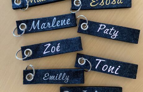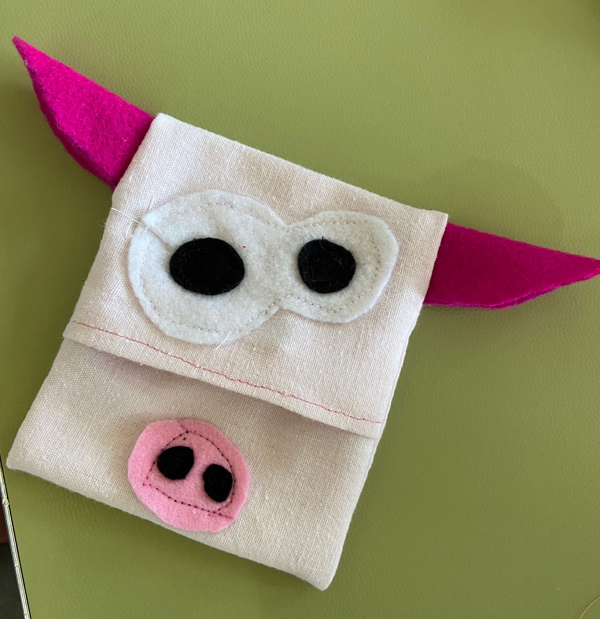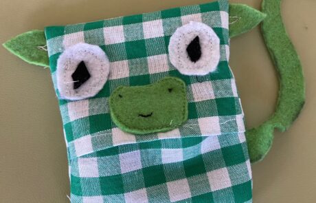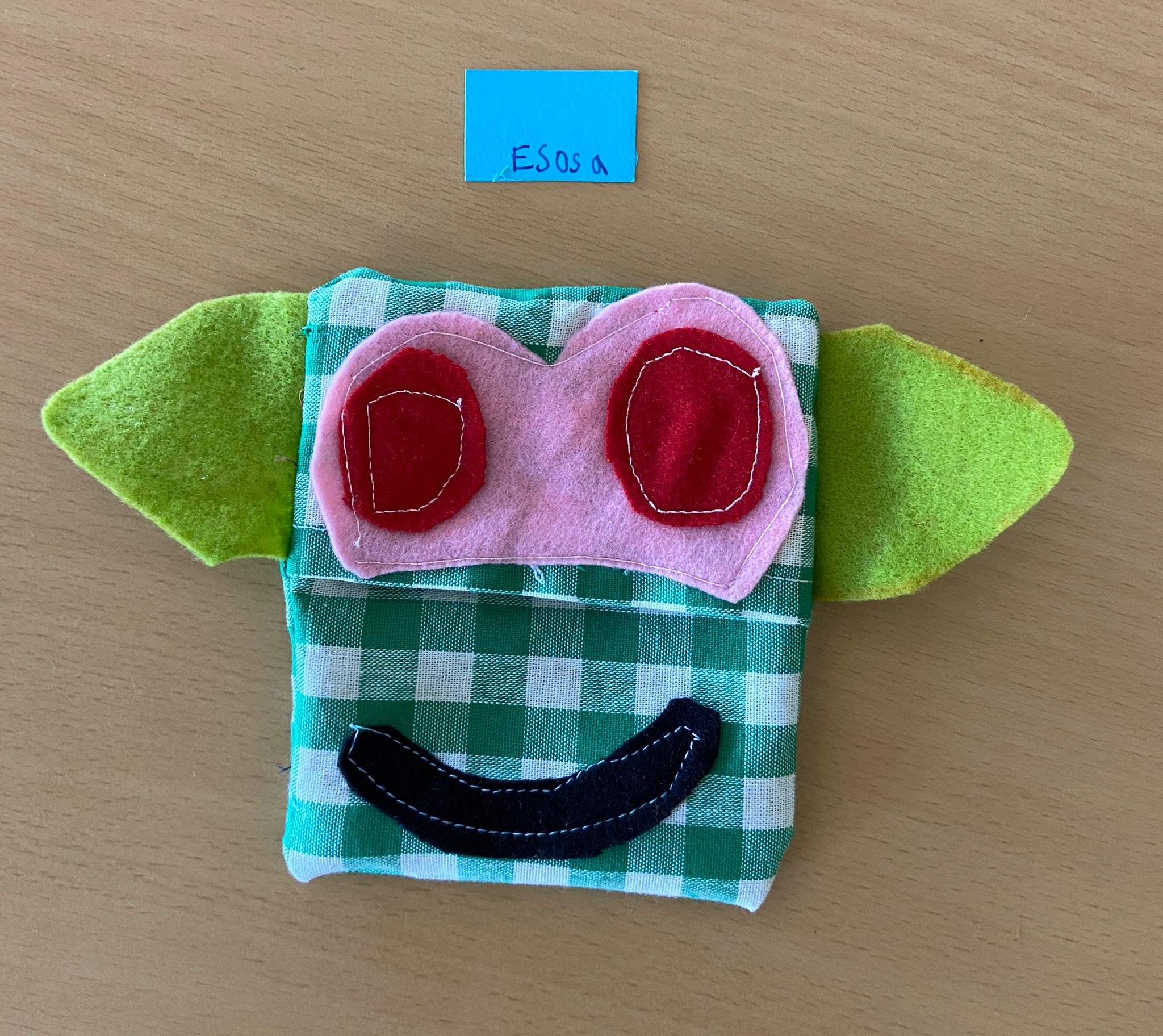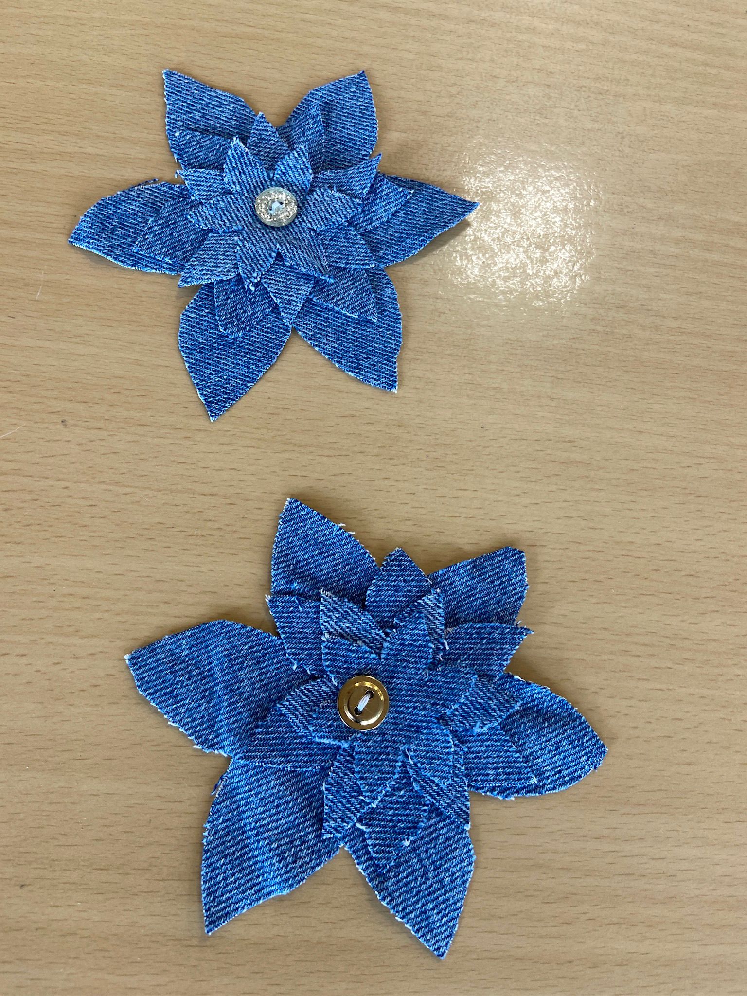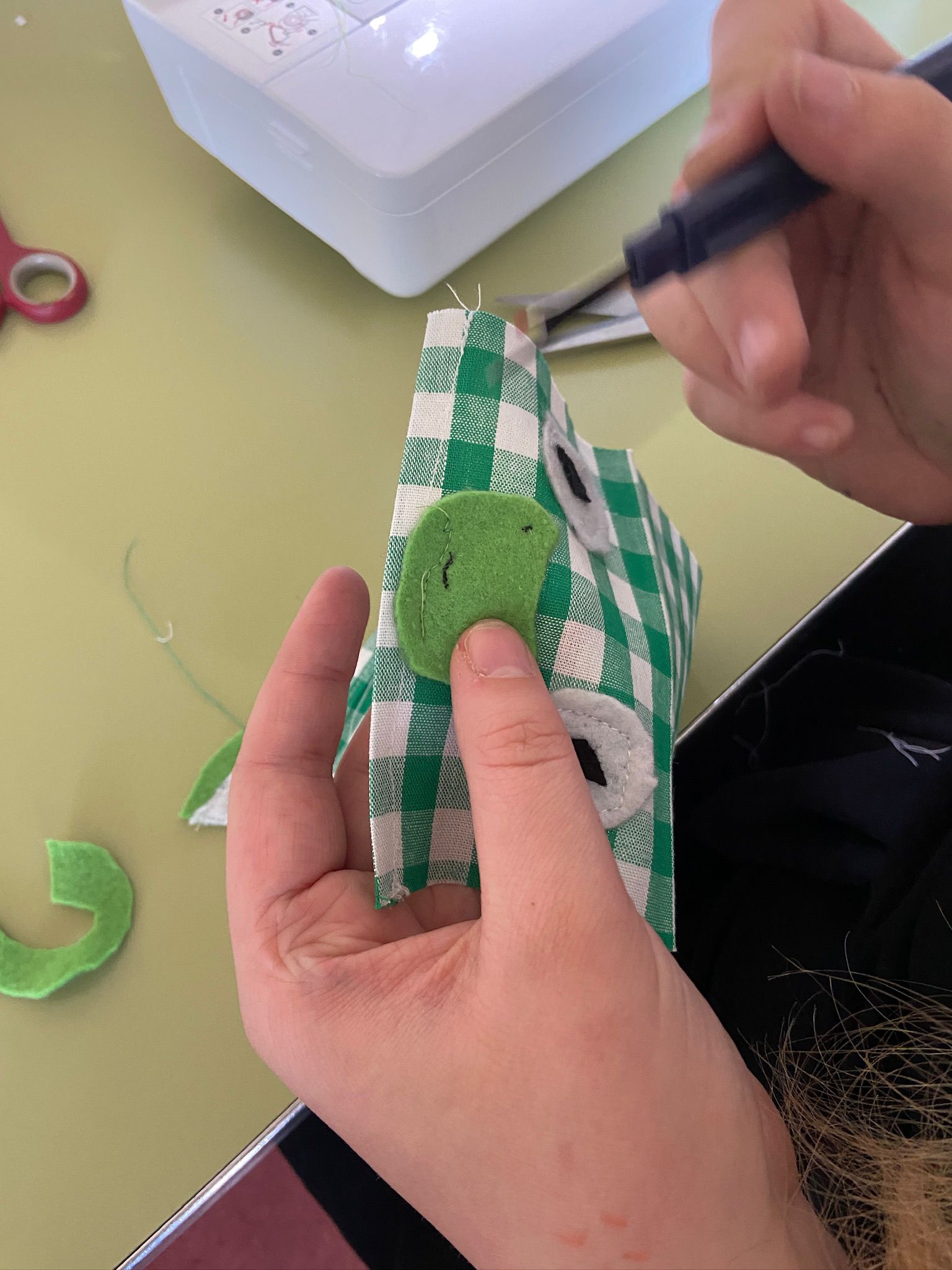Zu Beginn stand reine Handarbeit auf dem Programm; die SuS gestalteten eine mehrlagige Stoffblume aus Jeansstoff und mussten dazu anzeichnen, ausschneiden und einen Knopf annähen. Anschließend begann die Arbeit an der Nähmaschine. Jetzt galt es erst einmal, ein- und umzufädeln, gerade und parallele Nähte zu üben und die Koordination zwischen Hand und Fuß zu verinnerlichen. Dann begannen die Schülerinnen und Schüler die Arbeit an verschiedenen Nähaufgaben – die Stoffe mussten nach den Nähanleitungen vorbereitet, angezeichnet, gesteckt und genäht werden. So entstanden aus alten Stoffen, Stoffresten und Chips-oder Süßigkeitentüten neue und nützliche Gegenstände, wie z.B. Abschminkpads, Utensilos, Handy-Sitzsäcke, Monsterlesezeichen und -kühlpacks, Aufbewahrungsbeutel, kleine Taschen und Schlüsselanhänger. Dabei konnten die SuS eigene Ideen und Wünsche umsetzen, ihrer Kreativität freien Lauf lassen und von Stunde zu Stunde sicherer im Umgang mit der Nähmaschine werden.
